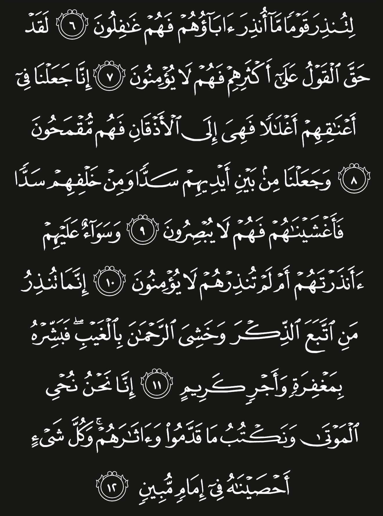 (ِلتُنذِرَ قَوْمًا مَّا أُنذِرَ آبَاؤُهُمْ فَهُمْ غَافِلُونَ)